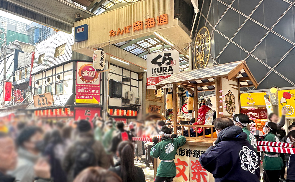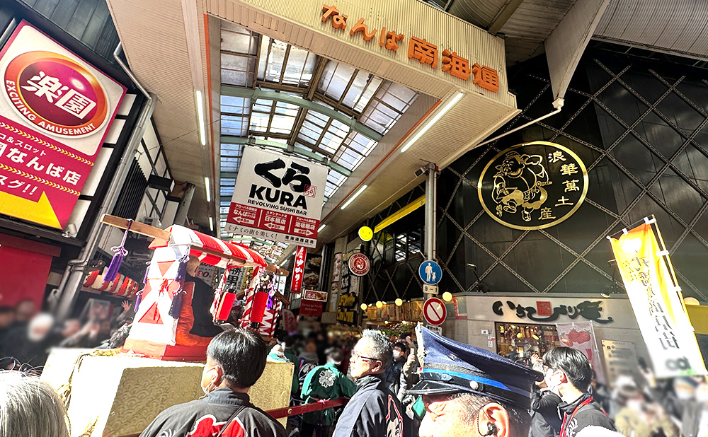 なんば南海通商店街周辺にも多くの人が集まり、新春らしいにぎわいが広がりました。