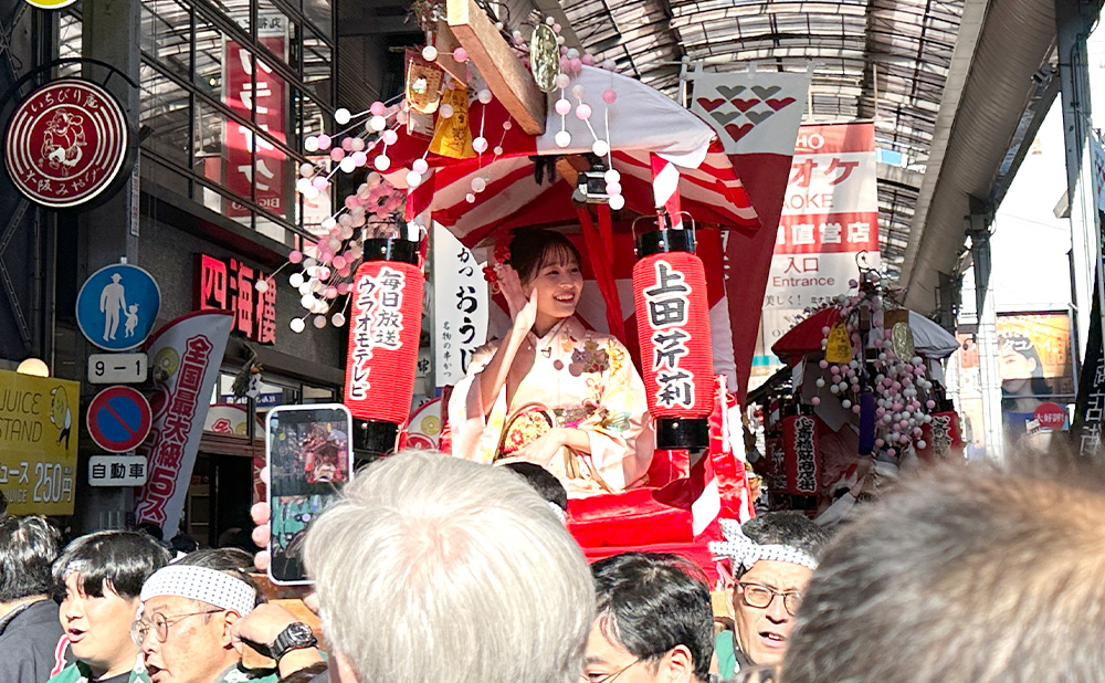 お知らせ2026年1月10日本日1月10日(土)、大阪ミナミの新春を告げる伝統行事「宝恵駕(ほえかご)行列」 が行われました。