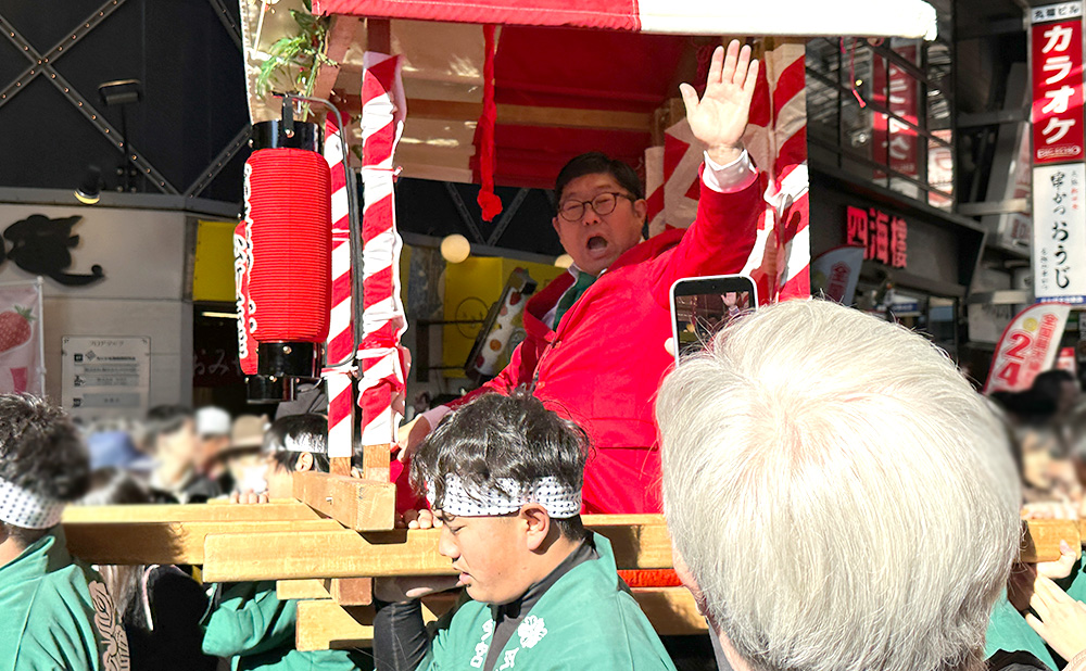 「ホエカゴ、ホエカゴ」の掛け声とともに、華やかな行列が大阪ミナミの街を練り歩きました。